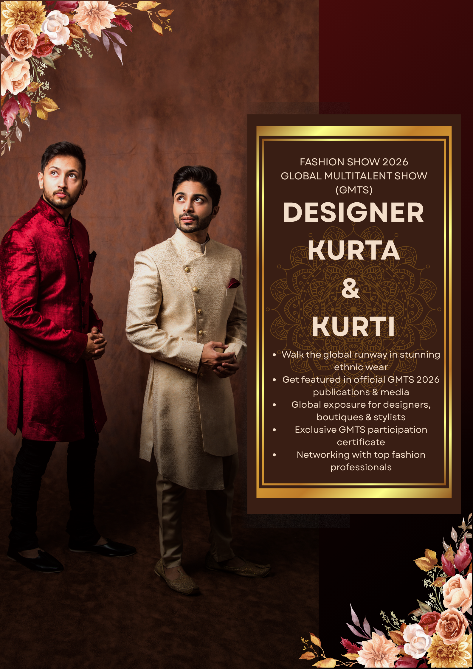 Showcase your ethnic elegance and modern creativity in the Designer Kurta & Kurtis Fashion Show 2026, proudly organized by the Global Multitalent Show (GMTS).